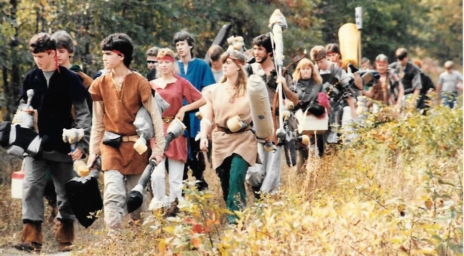 Unbeknownst to either the original Dagorhir Tribe or to Middle Earth, a charismatic young fighter named Falcon had moved West from Maryland to Cleveland, Ohio, in the early 1980’s, taking with him his padded weapons and Dagorhir handbook. Falcon founded Dagorhir Pentwyvern. Falcon made contact with the other Dagorhir groups and Pentwyvern offered to host the first Ragnarok.