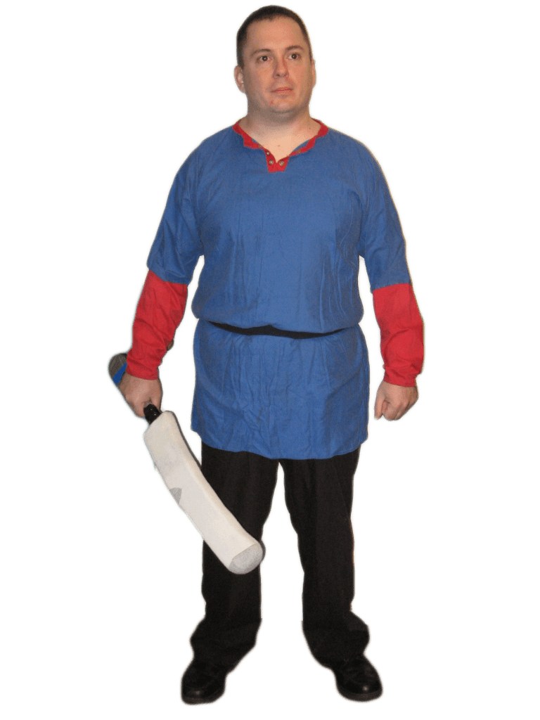 1.3.1 – A tunic, shirt, dress, or vest of crotch length or longer. Bare chest is acceptable if allowed by law and or camp/event rules, but only if the rest of the costume meets or exceeds minimum garb standards. Clarification: Obviously modern clothing such as sweat-pants, pajama pants, modern skirts, etc is not acceptable.
